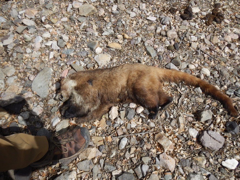 We came across a dead coati which is similar to a raccoon. More info can be found HERE.