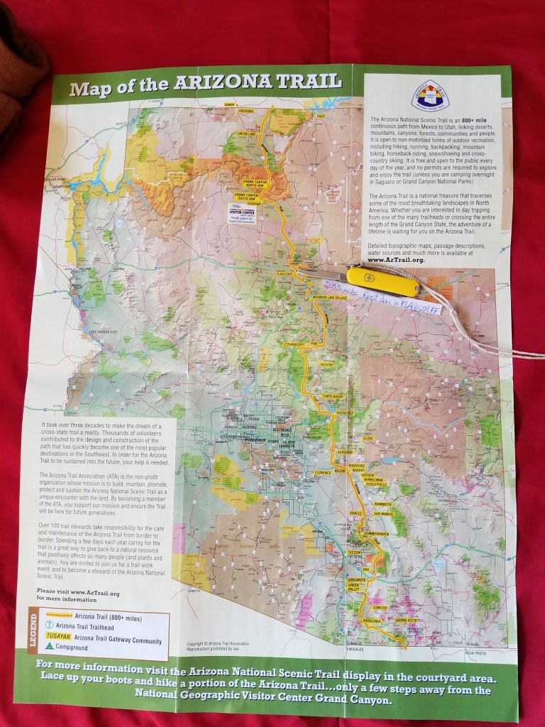 In Grand Canyon Village we picked up our last resupply box and received our desired permit to camp in the Grand Canyon for 2 nights before climbing out on the north side and finishing the trail at the Utah border. Tomorrow we will start our last section of this trail and I feel a mix of joy mingling with sadness brewing. So as the sunsets on our eve of departure Jobie and I will bring our concealed bottle of wine to the Canyon Rim and dangle our feet over the edge as we sip and take it all in. Who says I am not a romantic!