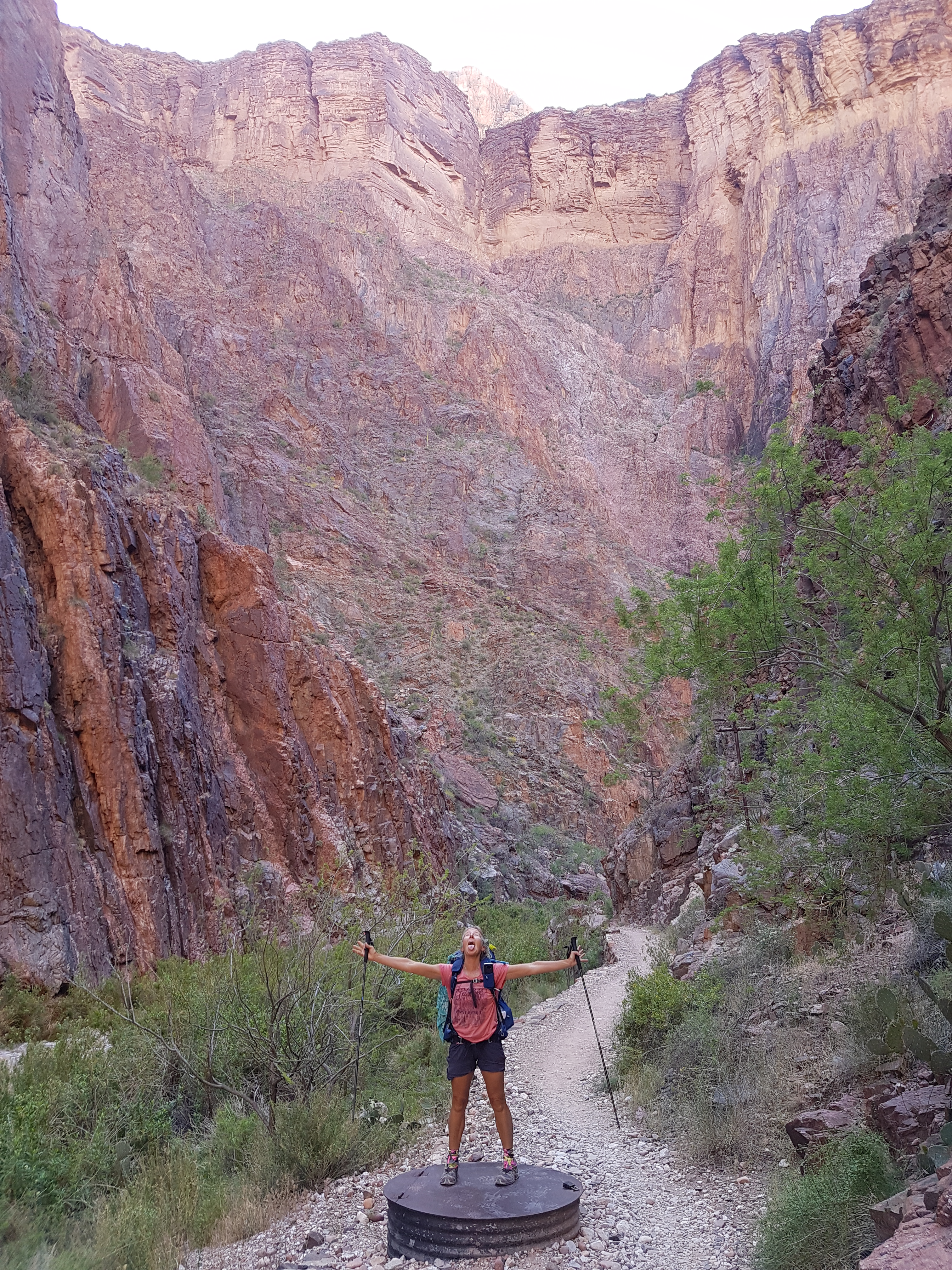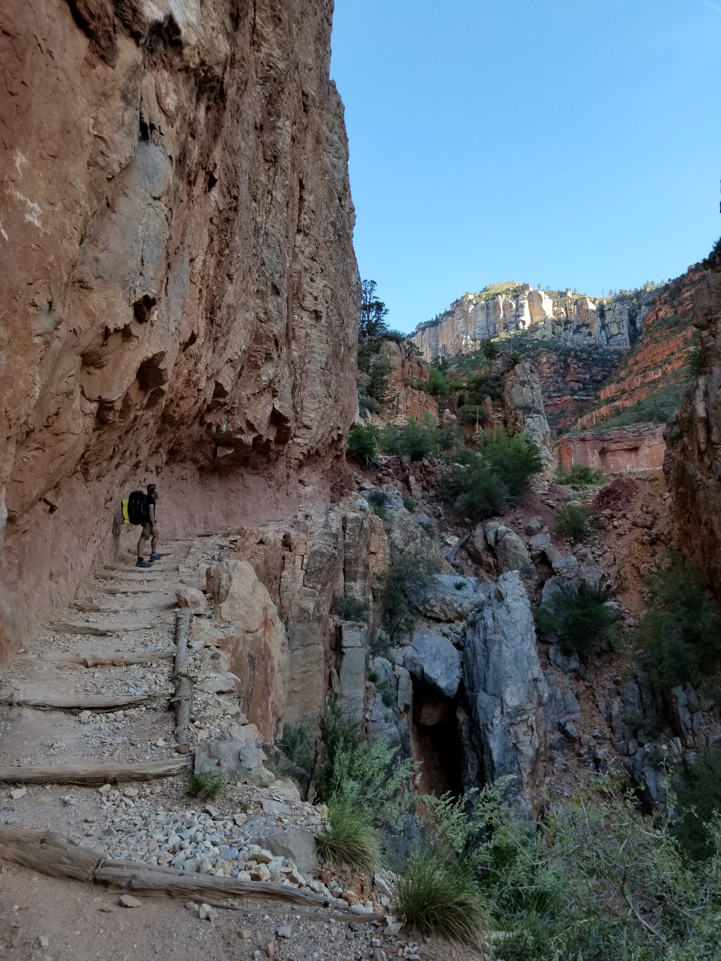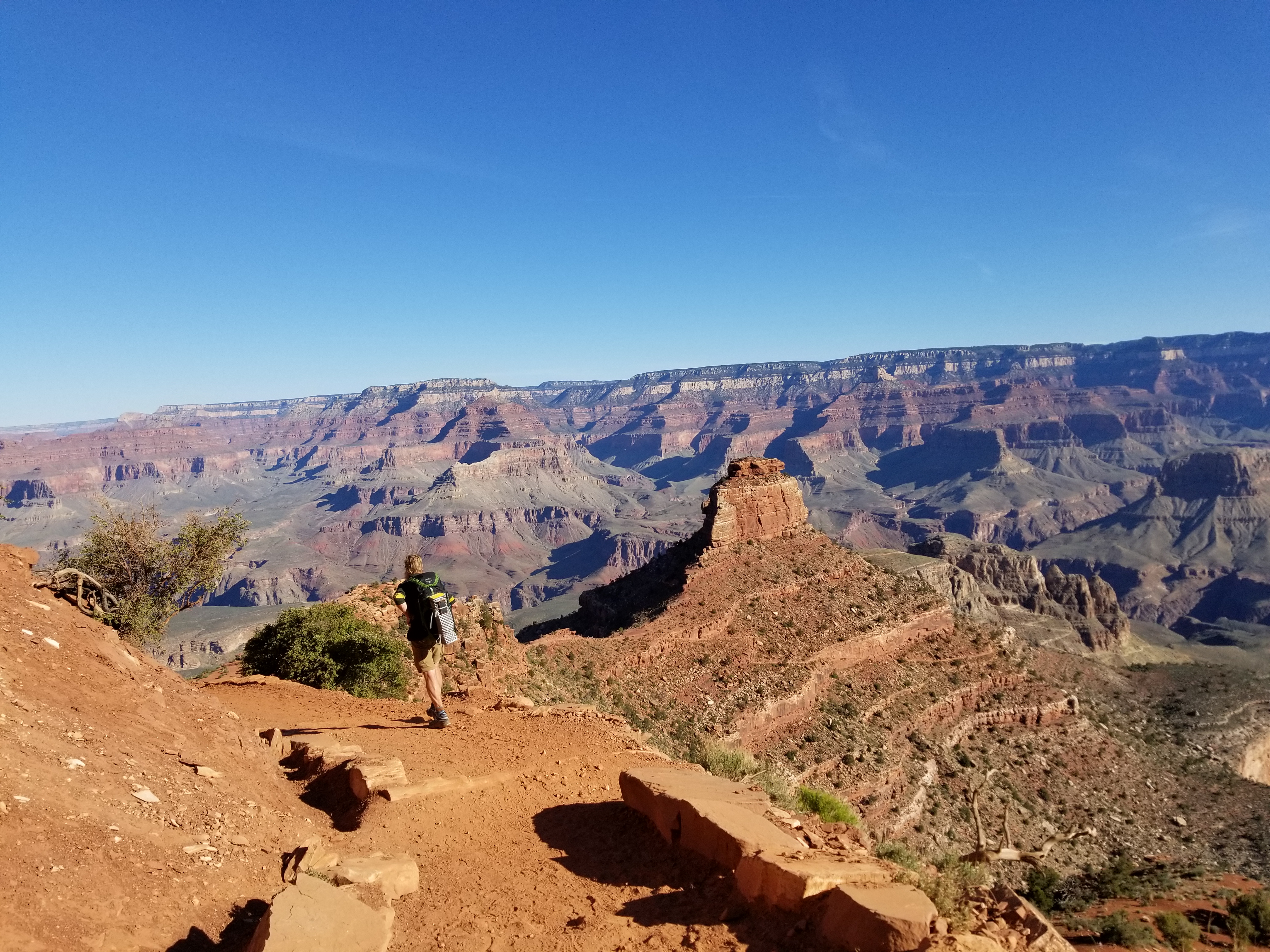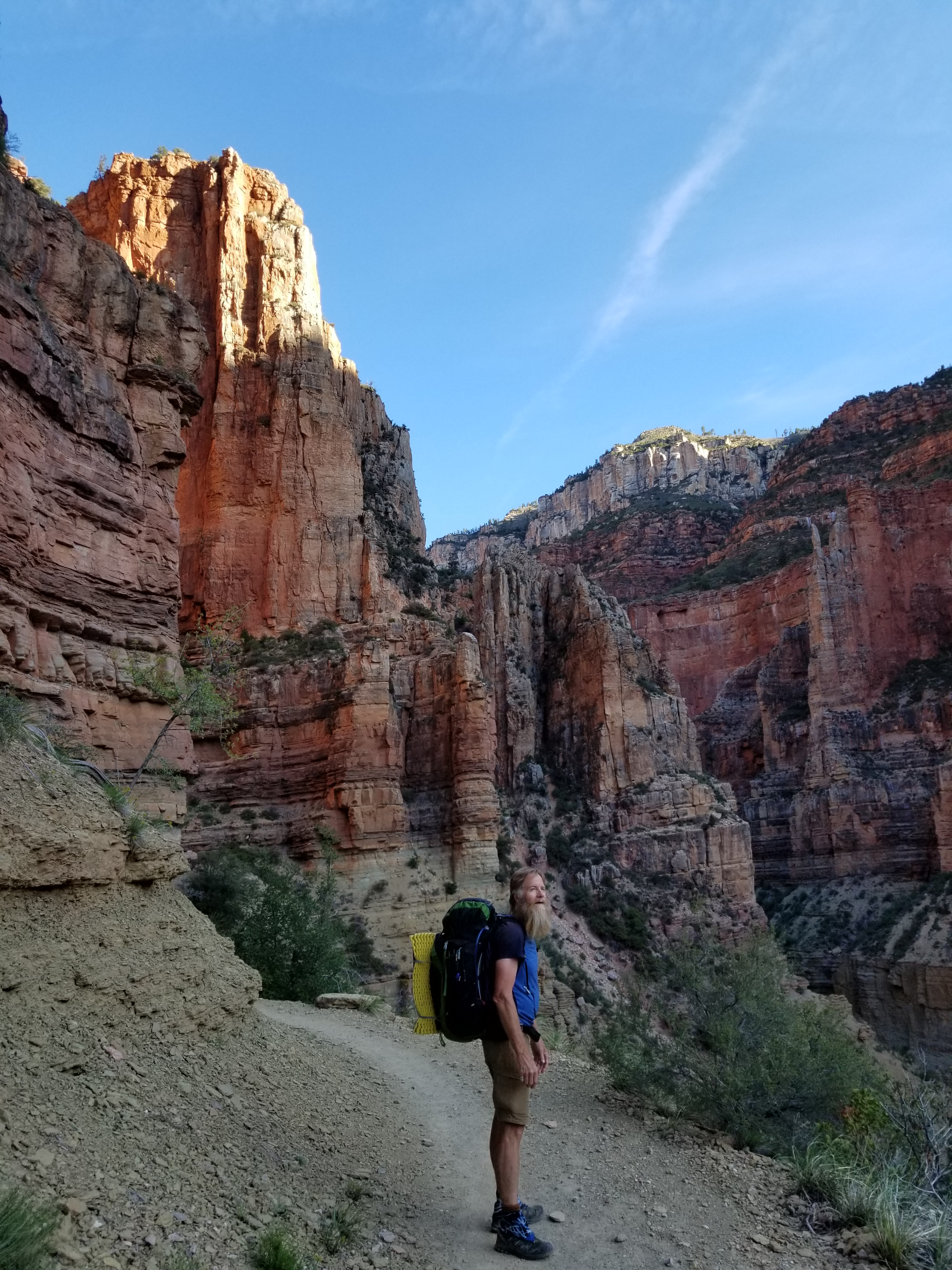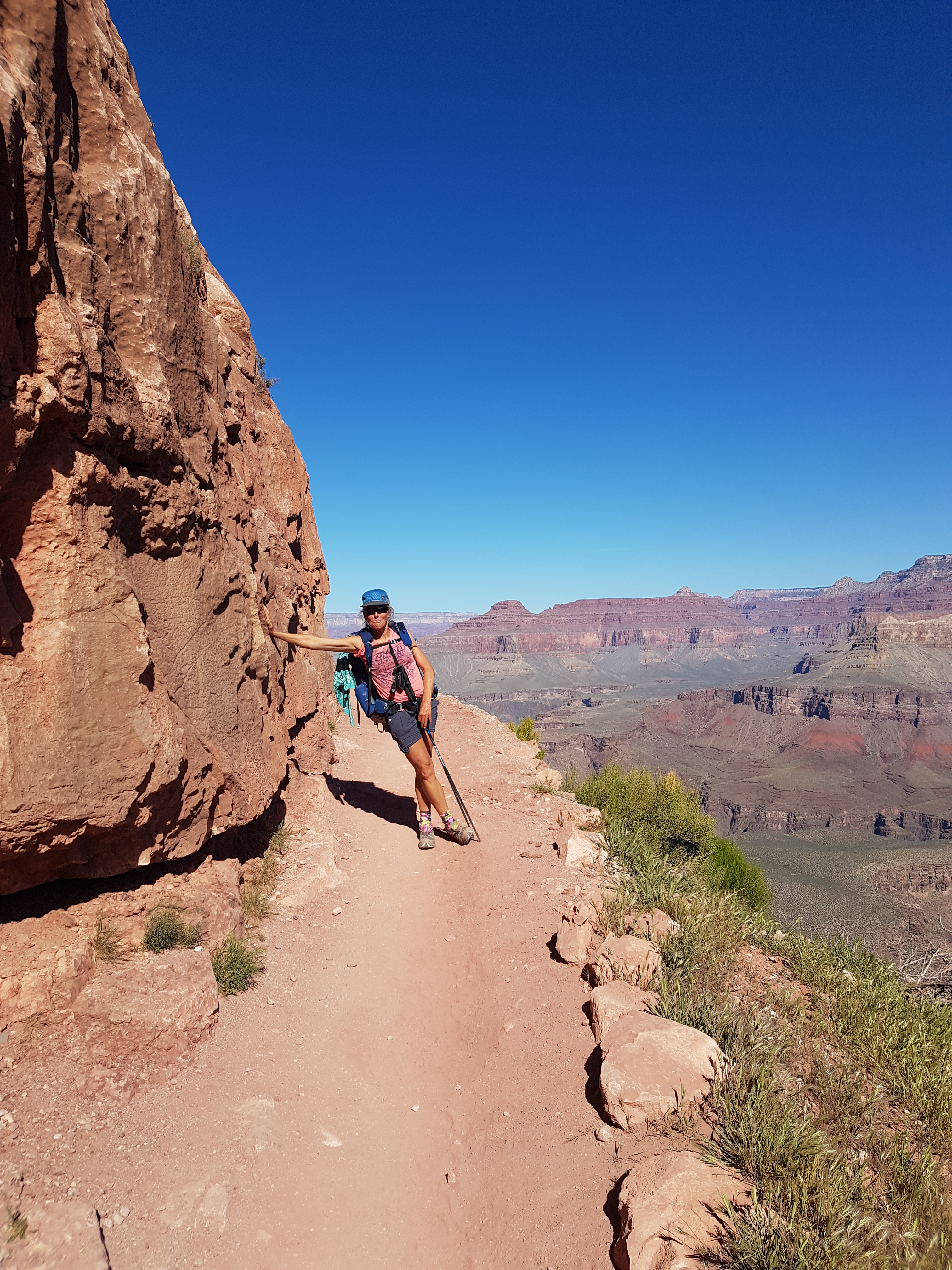 With our 2 night permit registered we hiked down into one of the exceptional parts of this trail. The scope, variety and colour of the landscape in the GC is AWEsome truly. Everywhere you look is a work of art. The trail is smooth to walk whether up or down and we bubbled with glee all the way.