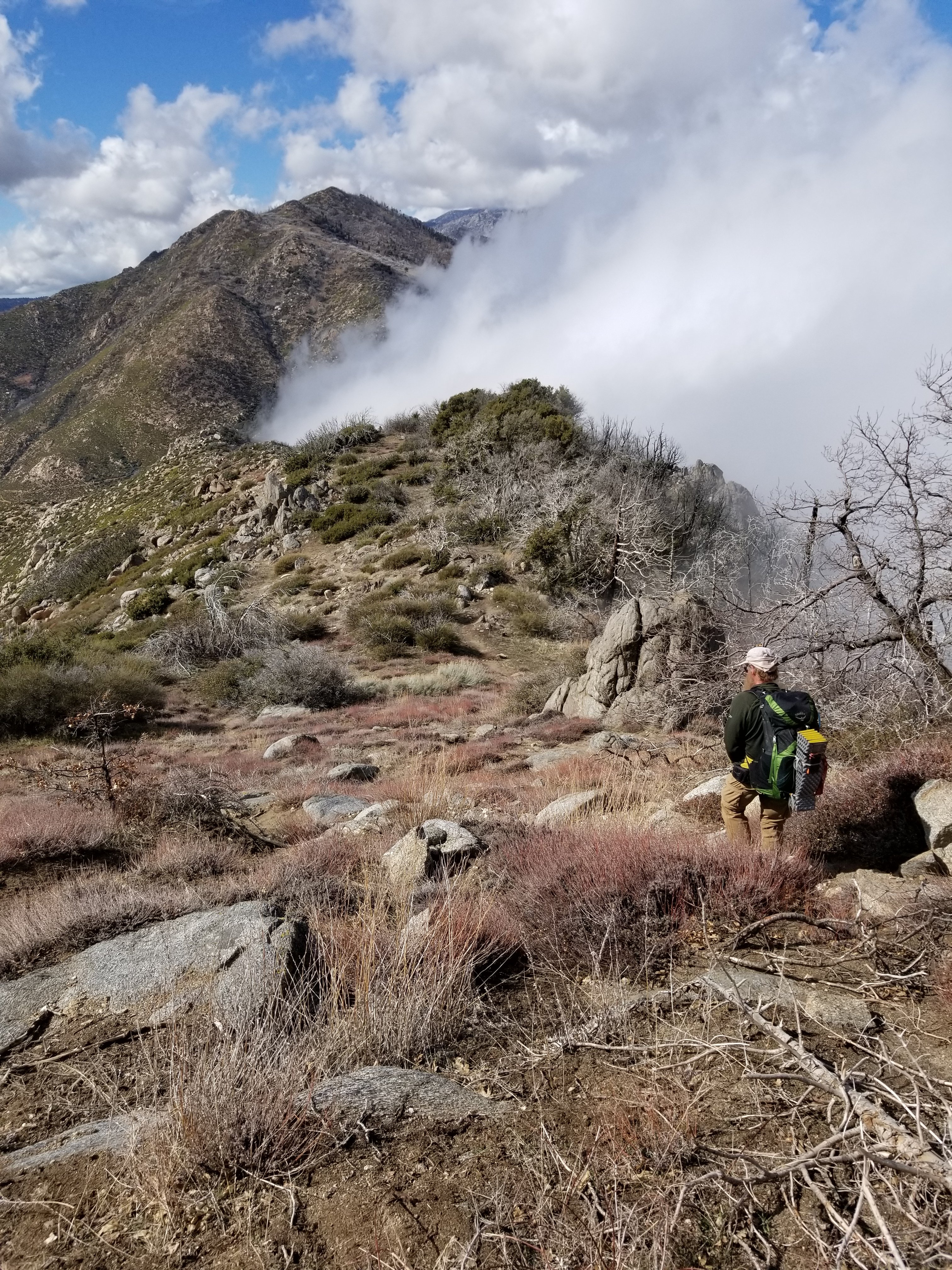 In this 4 day section we found the experience on the trail to transition from easy to the most challenging we have ever done. The gentleness of the slope leaving Warner Springs grew into longer ascents as we traversed the mountain sides and the steepness increased a few days in. Despite the higher elevation, it was the weather that grabbed us and gave us a good shaking.