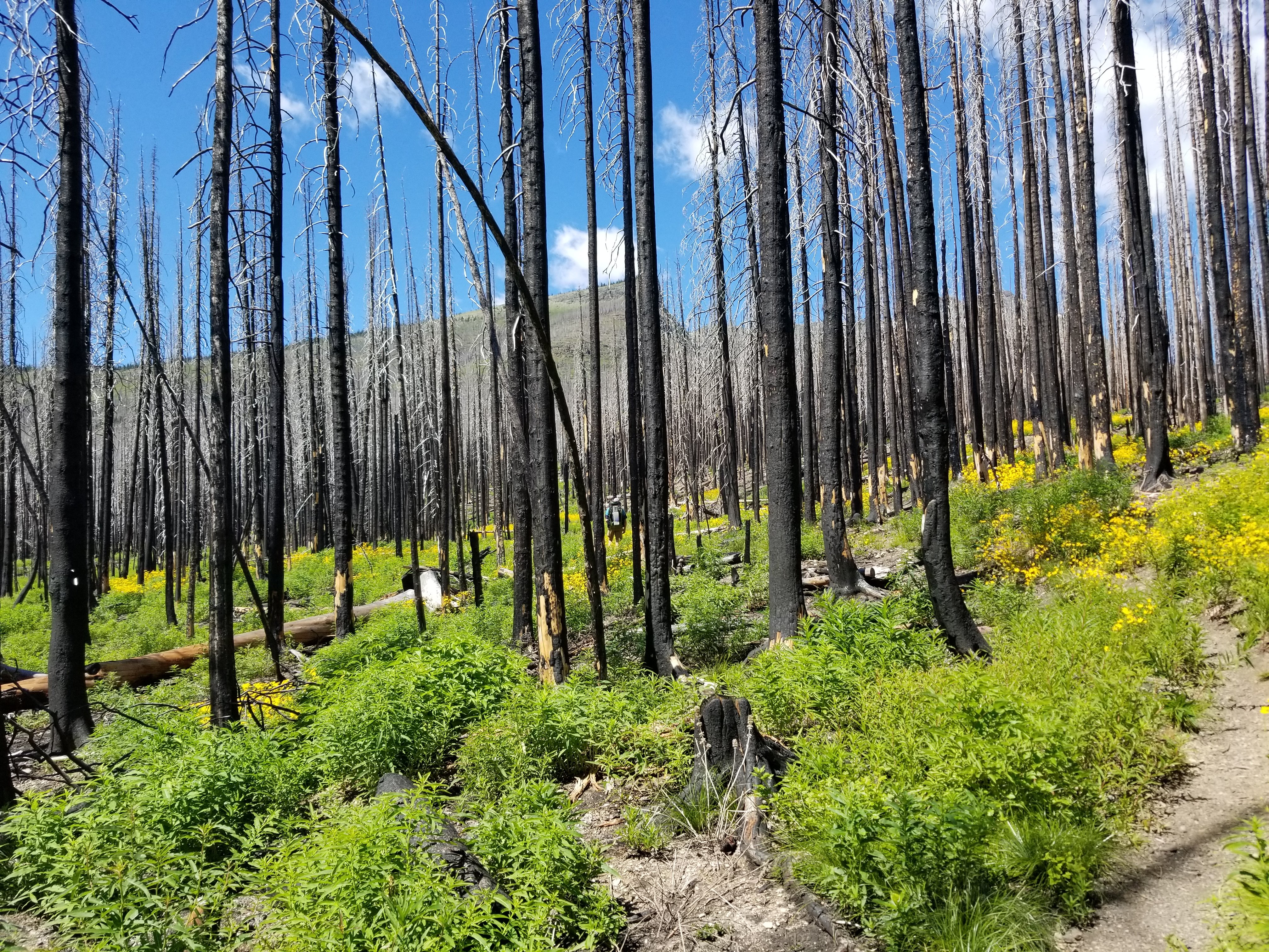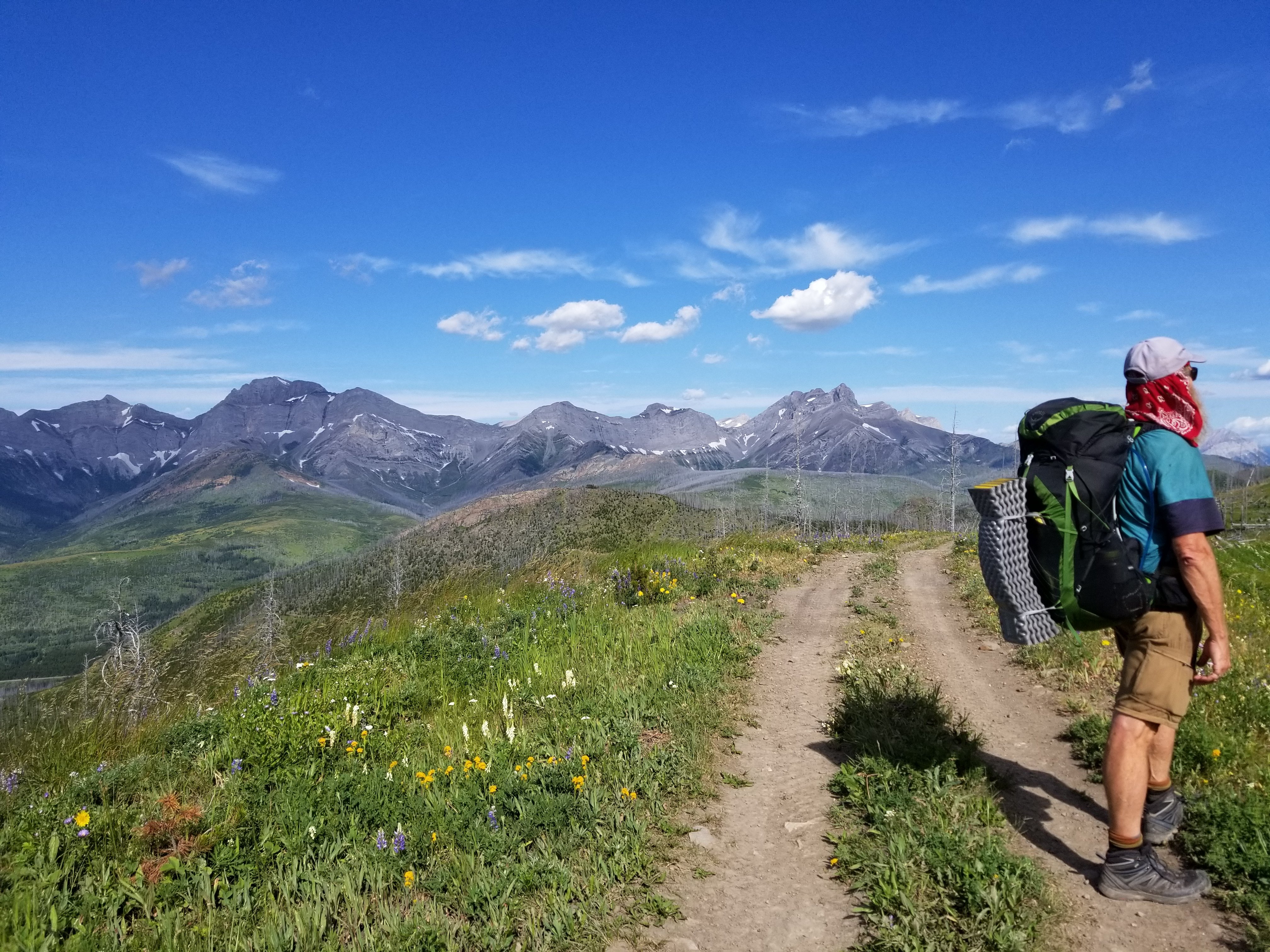 The last ridge was on an ATV ( all terrain vehicle ) trail which took us by surprise. So gorgeous and so little effort as it lead to Coleman Alberta our resupply/rest stop.