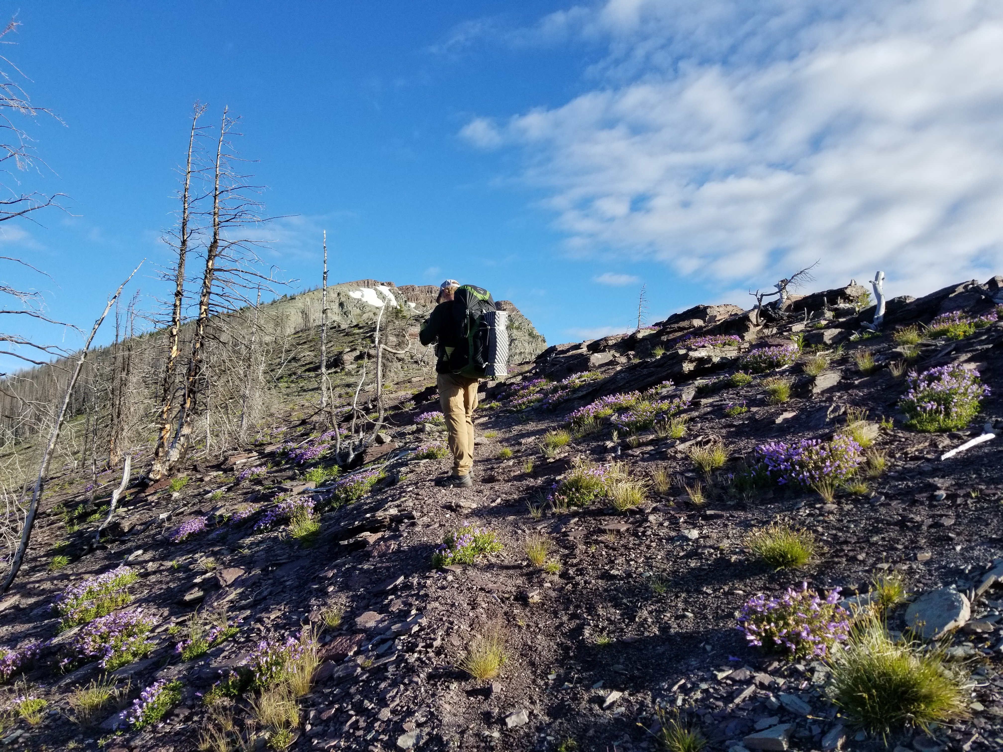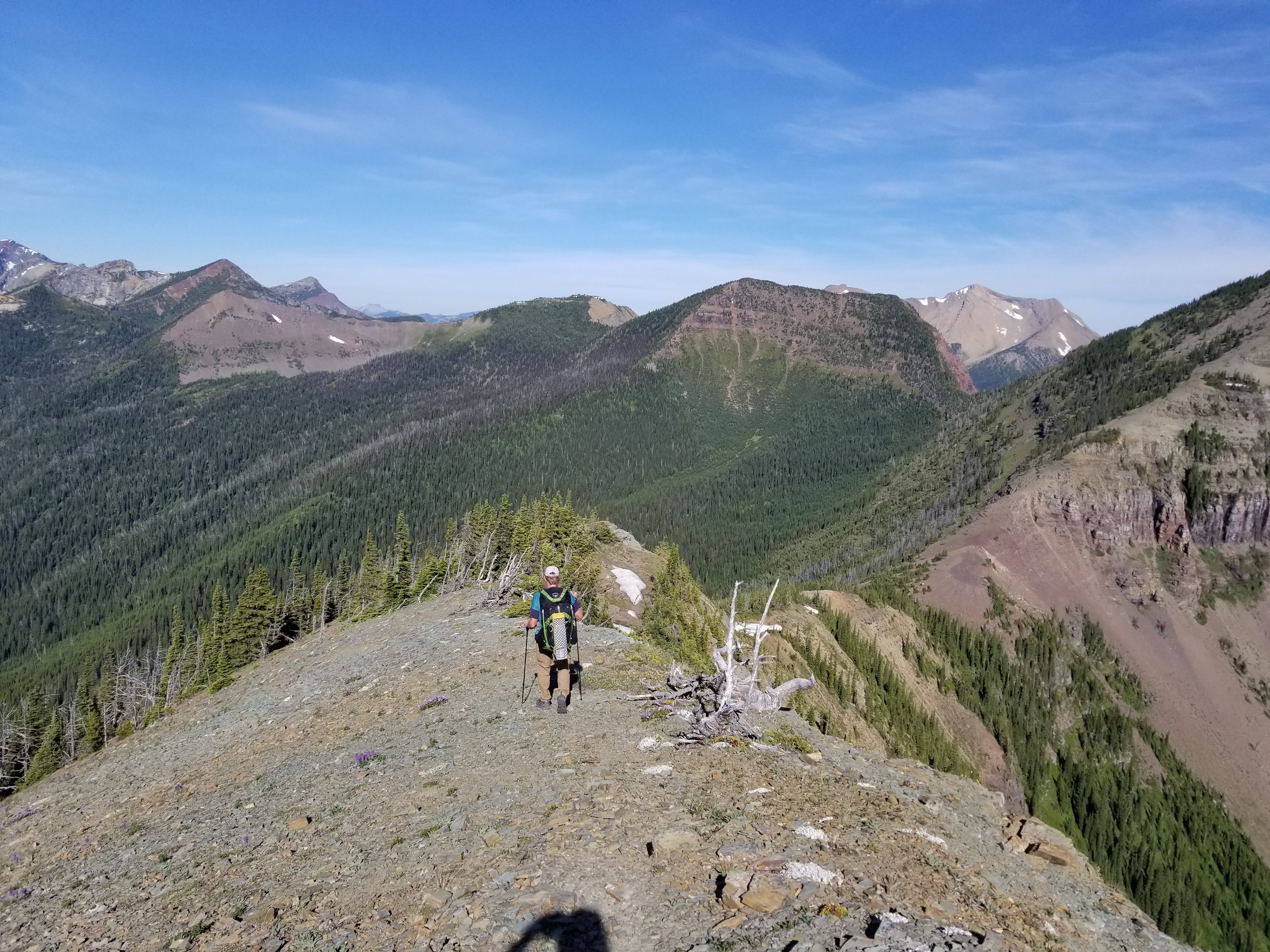 We are taking a calmer approach to this hike since it is shorter and we don’t have a deadline! Yeah!! We have hiked some 100+ kms so far in the summer sun surrounded by our own country’s Rocky Mountain beauty! Nothing pleases us more. The past 5 days has held a mix of terrain that includes forests, atv roads, steep ascents, and ridges.