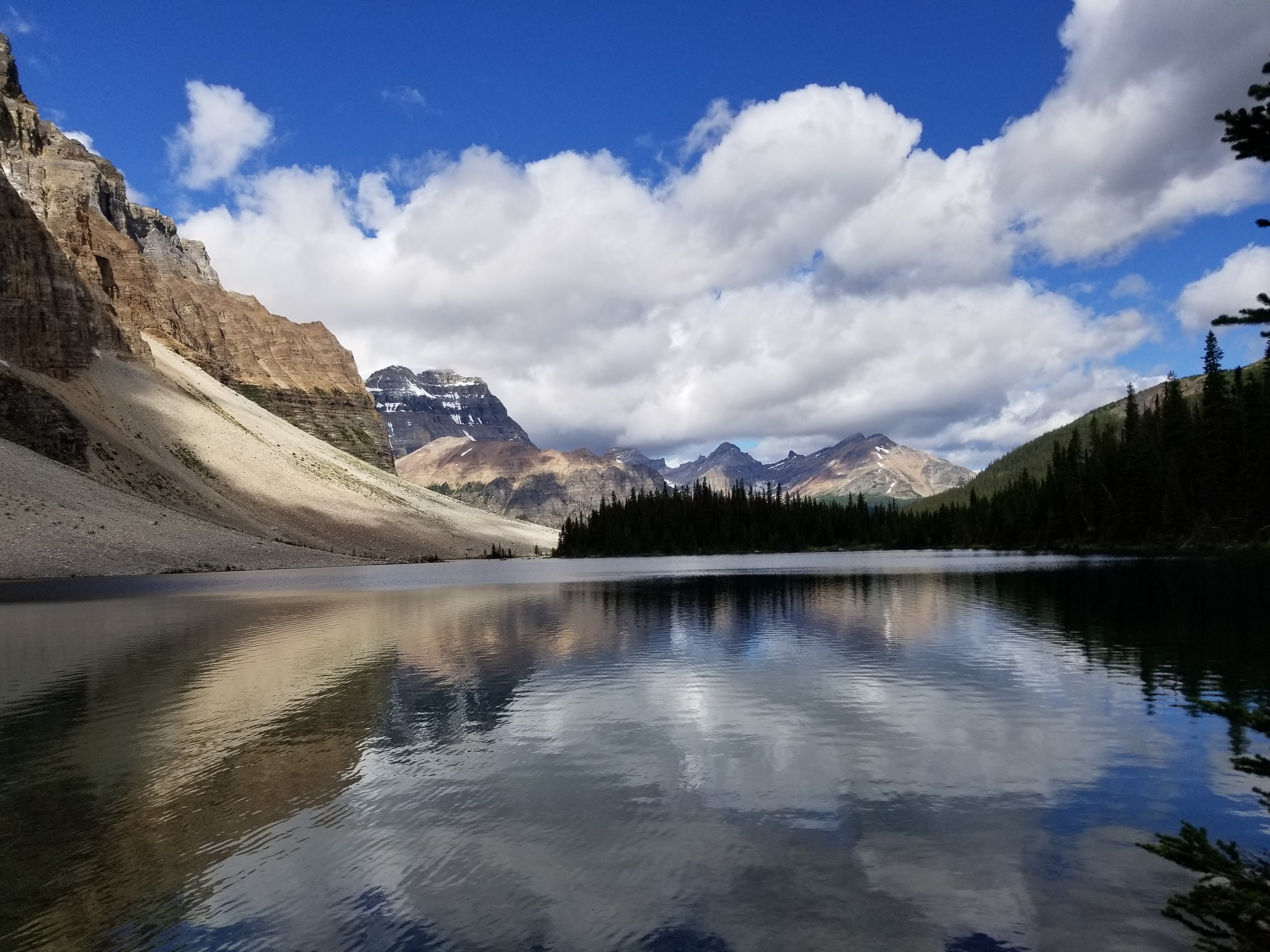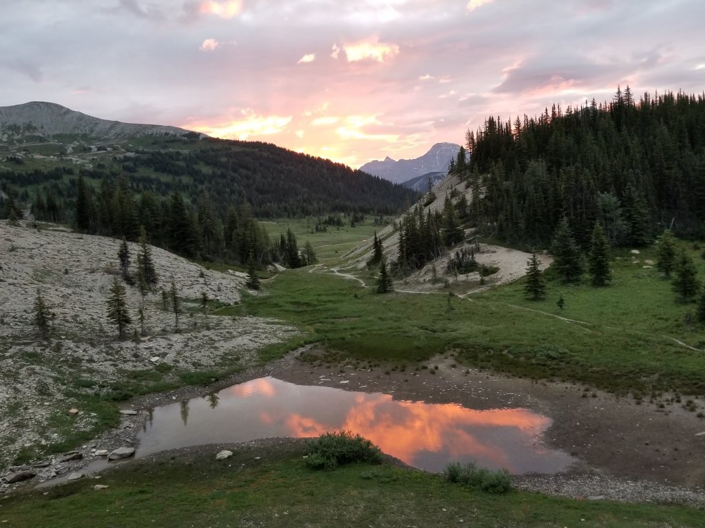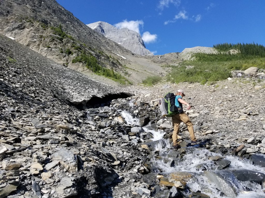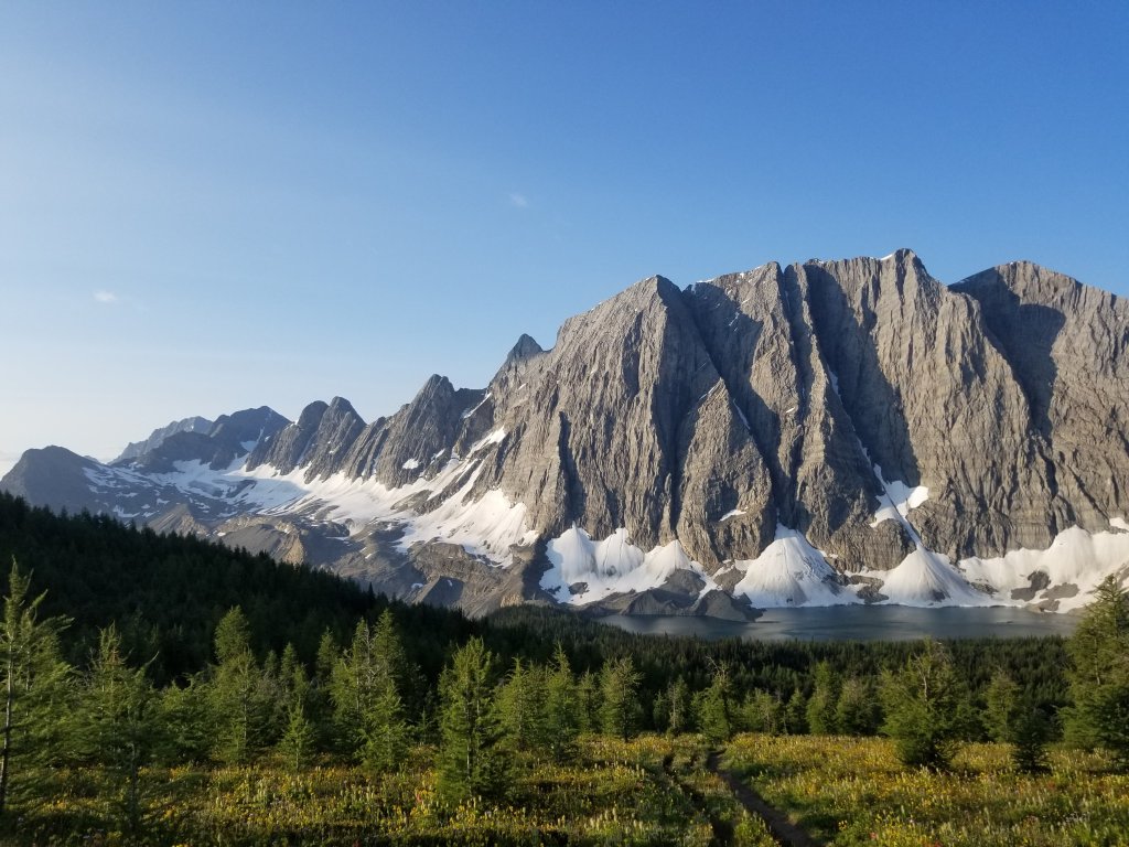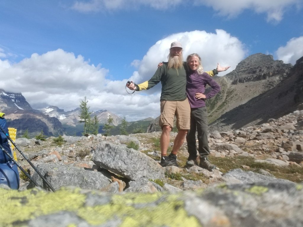 This 4.5 day section of the trail from Banff incorporated the famous ROCKWALL TRAIL! This trail would rival the WEST COAST TRAIL in popularity as seen in the number of hikers and hiking families doing it. The path itself is therefore well trodden and maintained but there are lots of obligatory daily greetings and meetings to add to your schedule. Interesting to note that in this stretch we saw zero large animal scat on the path which seems abnormal, however we did spy 2 sets of mountain goats munching their way along the high range- out of humans way.