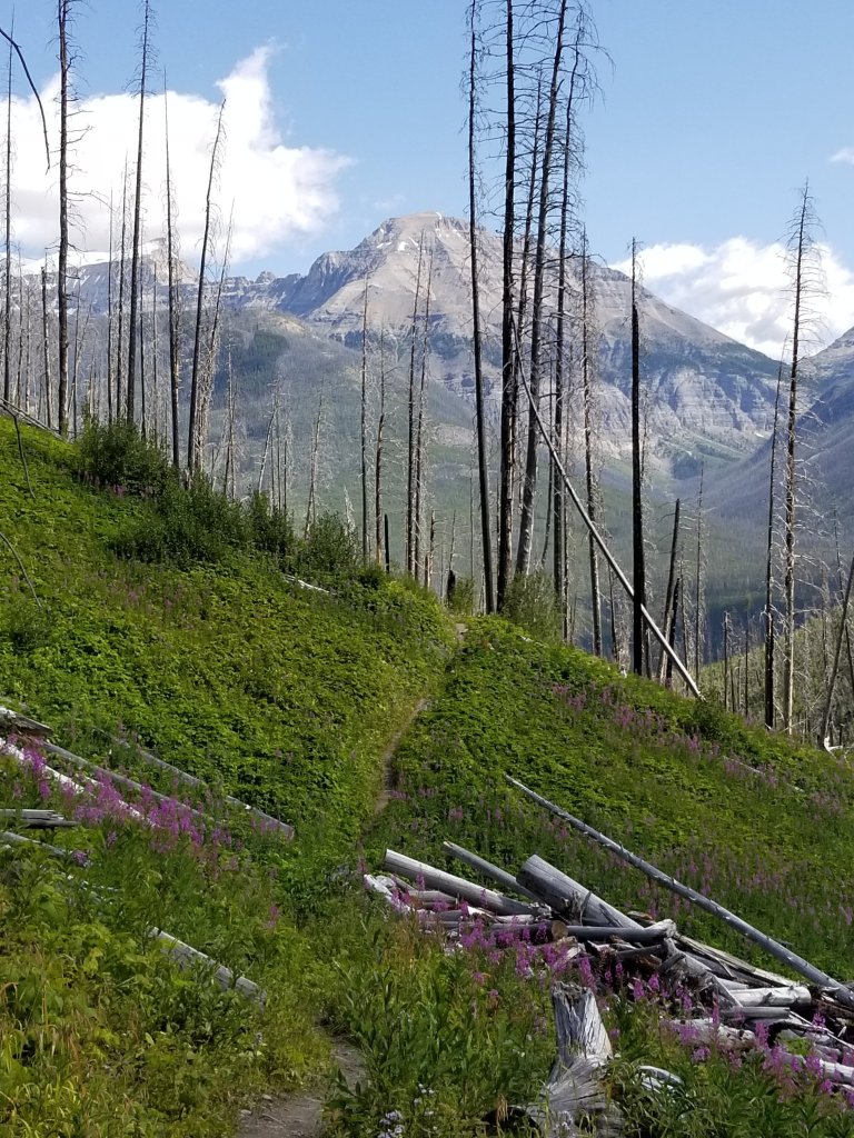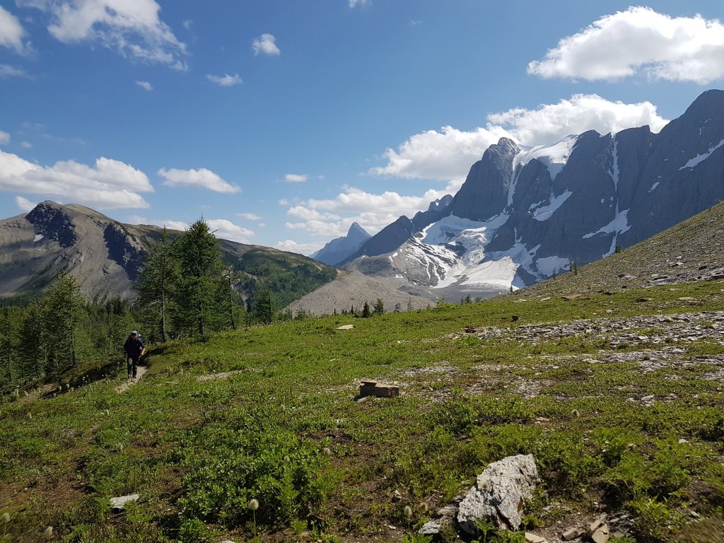 This ROCKWALL TRAIL is easily accessible from Trailheads on Hwy # 93 south and most folks are excitably hiking a 3-4 day loop trip. Again the scenery is stellar with endless variations of mountain faces.