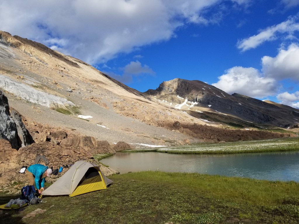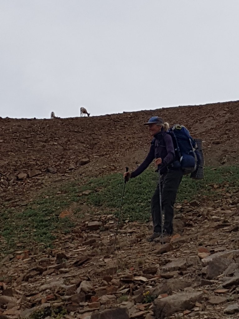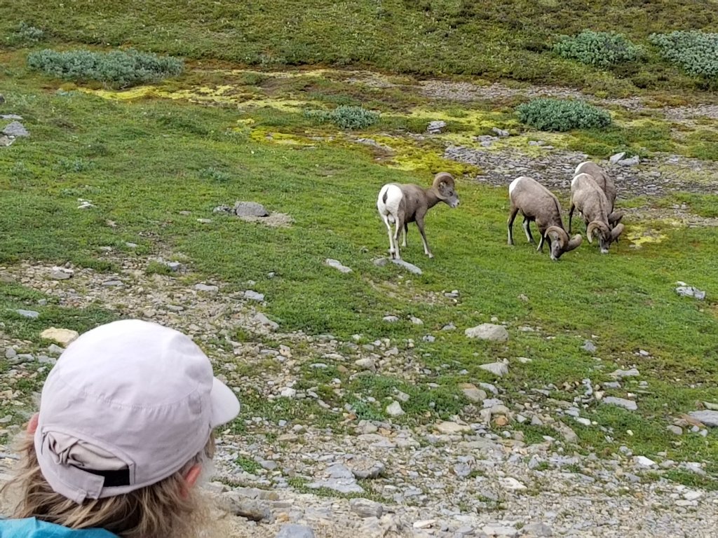 On leaving SC our first camp was at Michelle Lakes where a group of 4 Bighorn rams spent their day grazing and butting heads unimpressed by our proximity. I called them ” Ram-a-dam And The Bum Bums”.