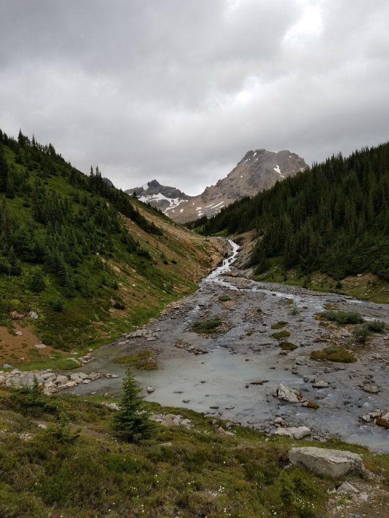 It rained most of the night while we were at Pinto Lake but the morning brought a reprieve which we took advantage of to pack up and move on. Rain brings more volume and energy to the creeks which quickly became obvious. Creeks which would be mild and easy to cross before a rain would be urgently rushing and carving out new pathways afterwards. It was a wet and cold footed day on our way to Cataract Pass.