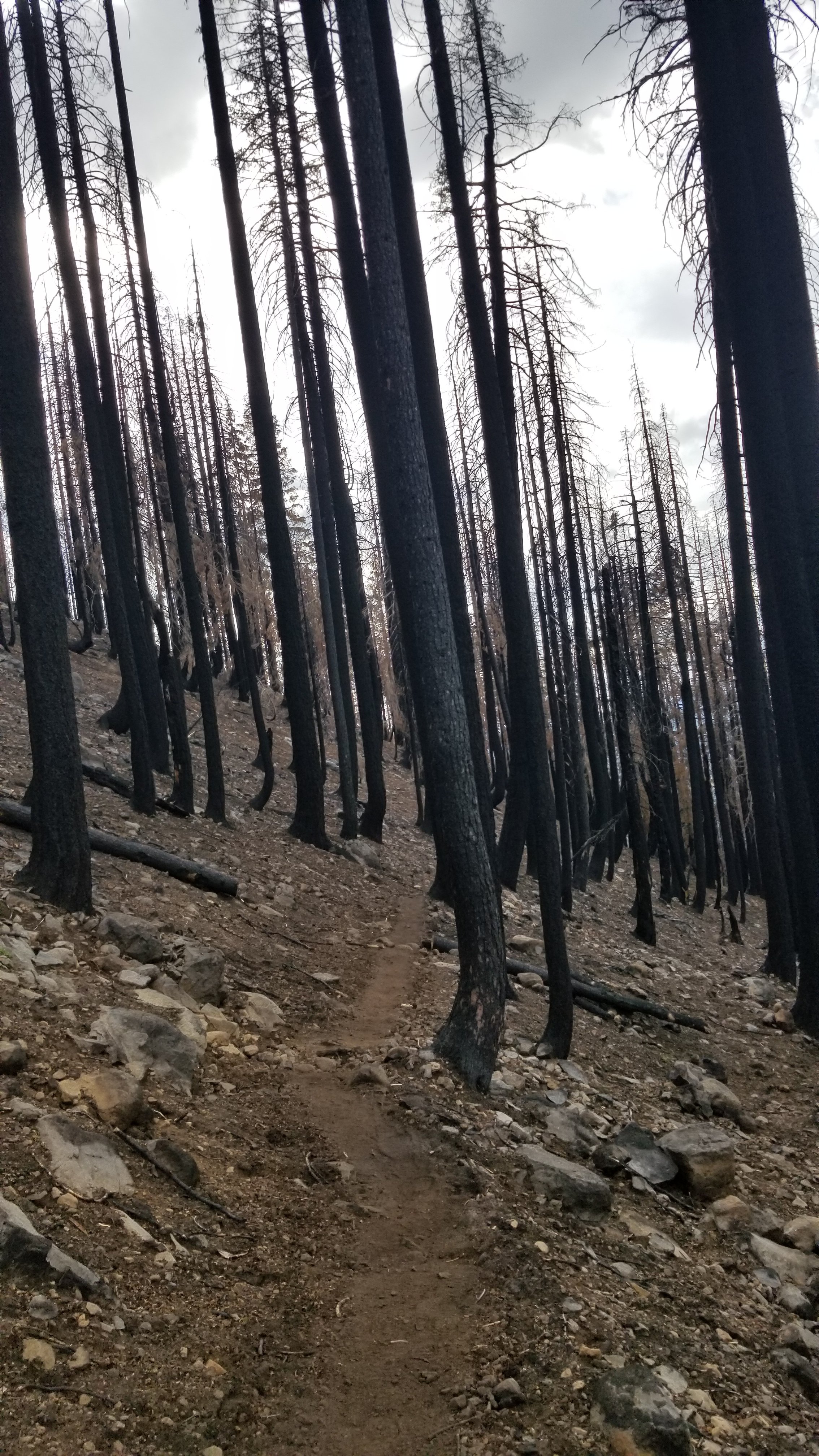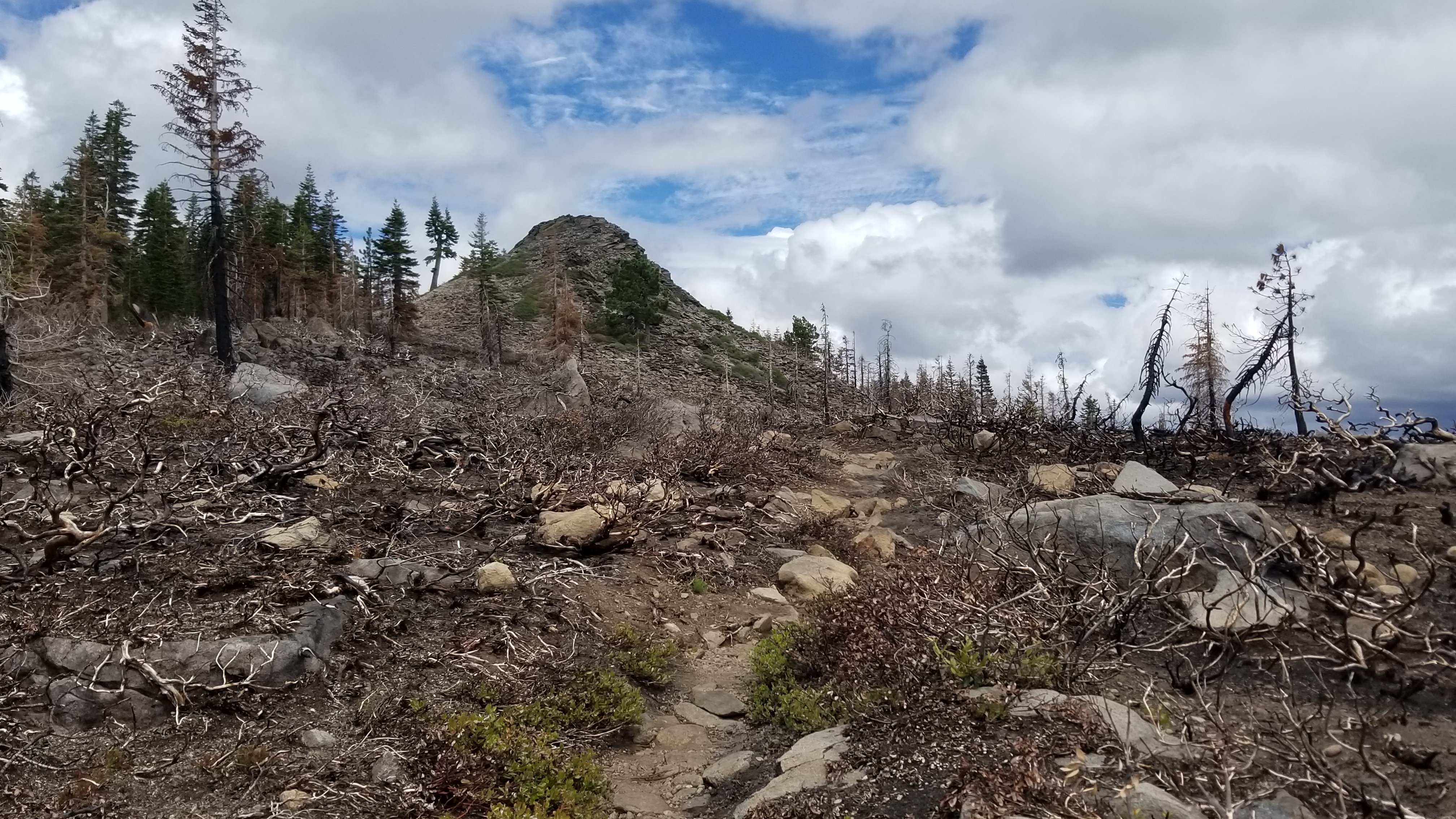 The trail leaves the Sierra Nevada mountain range and enters the metamorphic volcanic range of the Cascade mountains. We pass through Lassen National Park which has been hit by fire multiple times.