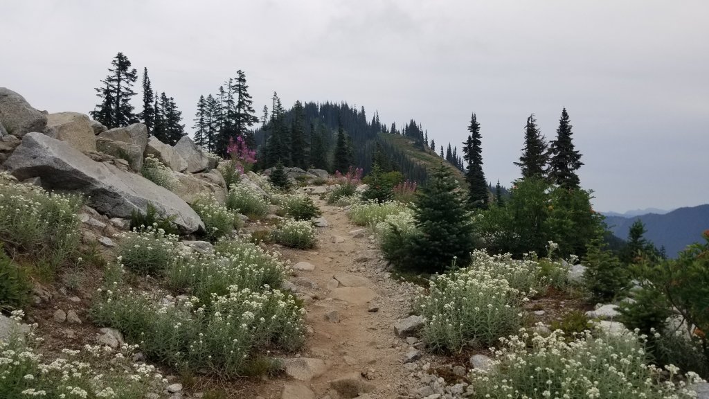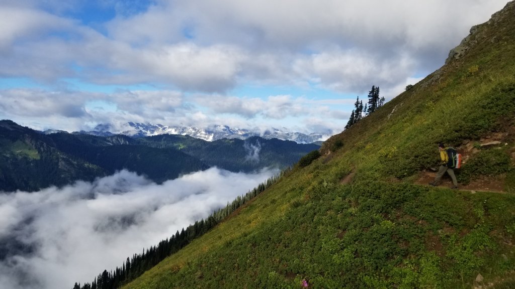 SNOQUALMIE PASS (mile 2394.1) to STEHEKIN (mile 2572.9). We were able to walk ourselves easily out of town back to the trail and its familiar sense of home. It is from this point that we come to realize that the “W” in Washington parallels the landscape. We climb, we descend, we climb and we descend again and again. We are softened from the flat forest walks of Oregòn and lower Washington and weakened slightly from the virus so the effort required to gain and lose elevation so consistently was a little rough. However, this hiking paradise, because of its rewarding views, inspired us onward. Sleep came easily that night.