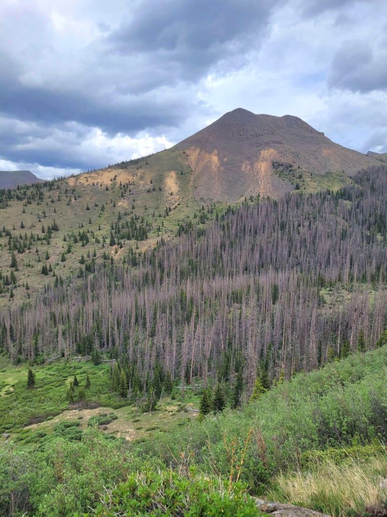 A large part of the spruce forest in southern Colorado has been infested by spruce beetle and the results are devastating. The dead standing trees look like someone has brushed them into the landscape with gray paint.