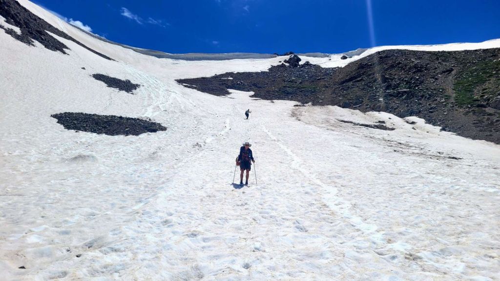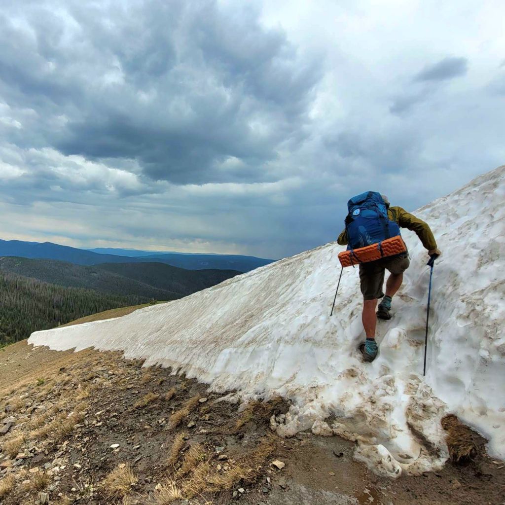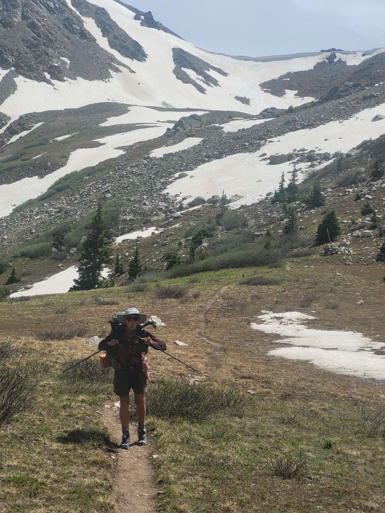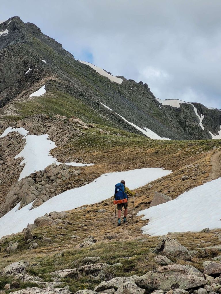 Colorado hiking is challenging and committing to this trail puts us on the ‘Do’ path. There is no going back once you start your day and you are miles away from towns and find yourself in the middle of a wind tempest that wants to blow you off course. There is only holding your ground and moving forward. Then you realize in your exhaustion there is a 6th 12,000′ pass to climb before you camp. Or you come to a pass that still has a ridge of snow obscuring the way down, and after finding a spot to assess the situation, you hope you have chosen the safest way down since both the snow route and the rock scramble are risky.