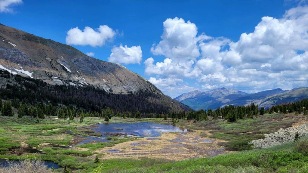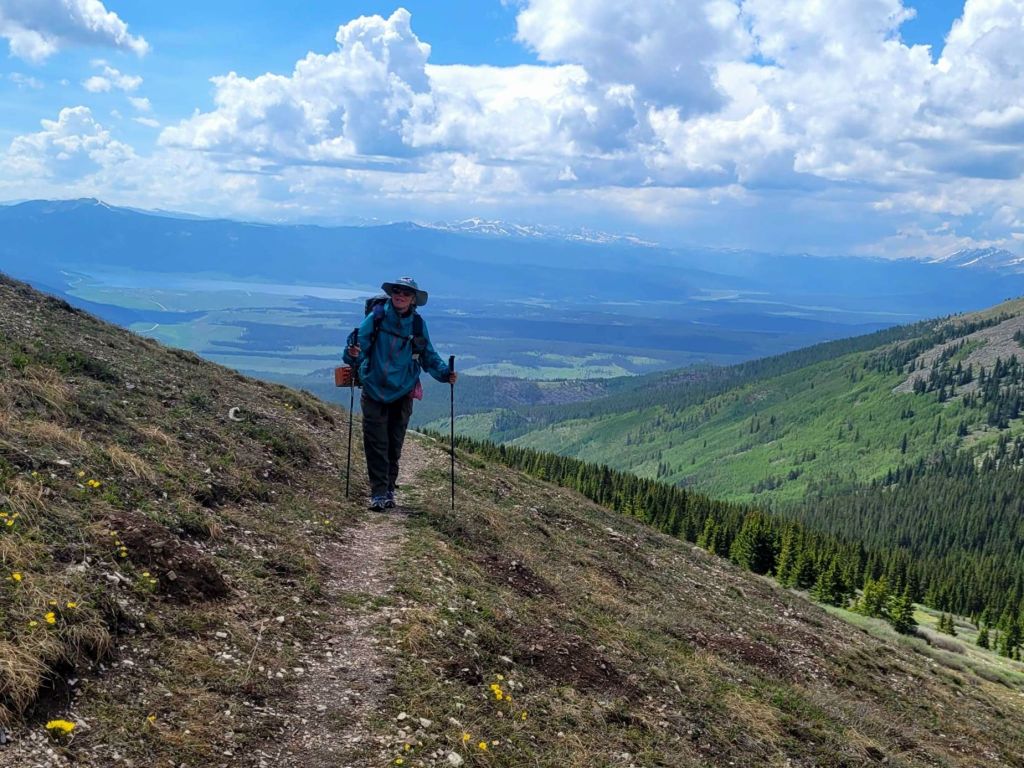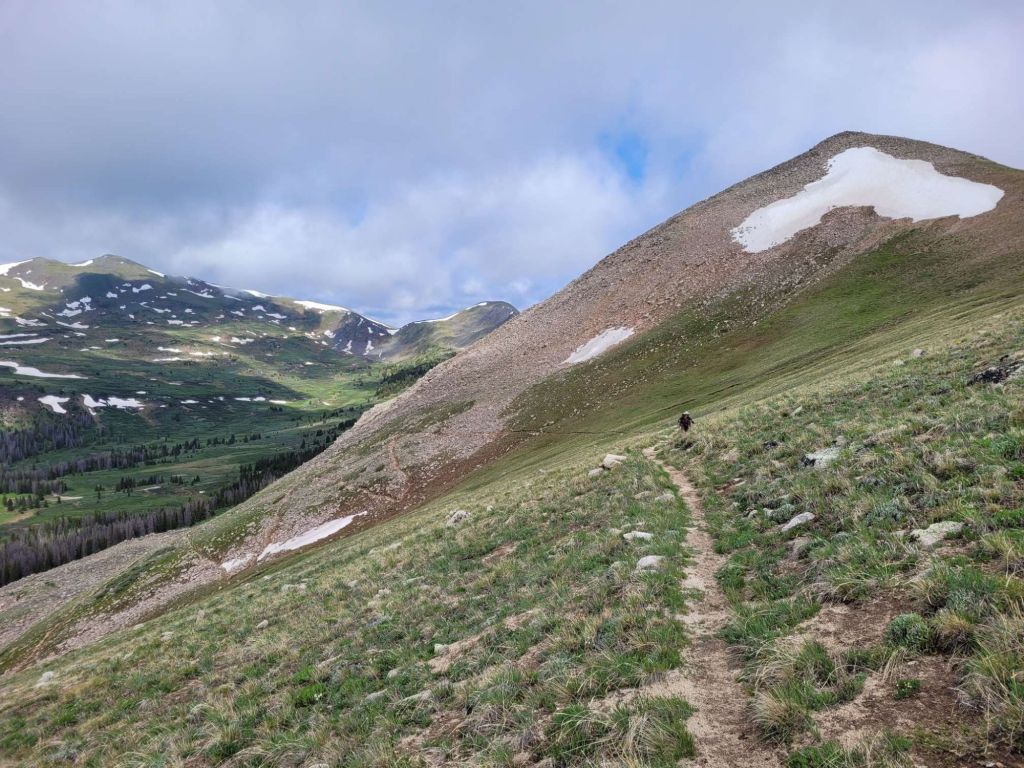 We are crossing paths with lots of hikers on the Colorado Trail as it overlaps the Continental Divide Trail. We appreciate being on the CT as the maintenance (removal of blowdowns) and engineering (bridges, filled and leveled pathways) are amazingly well done! Daily Jobie exclaims out loud how great the trail is and how immense this whole area is. ” This is sooo huge!”