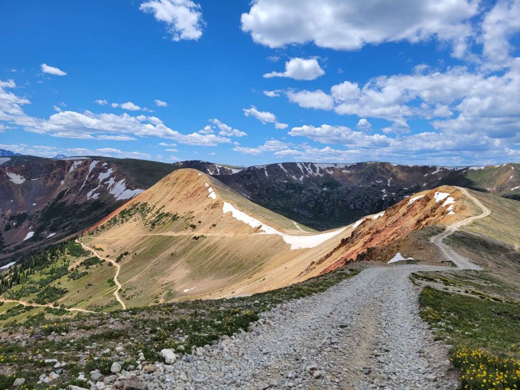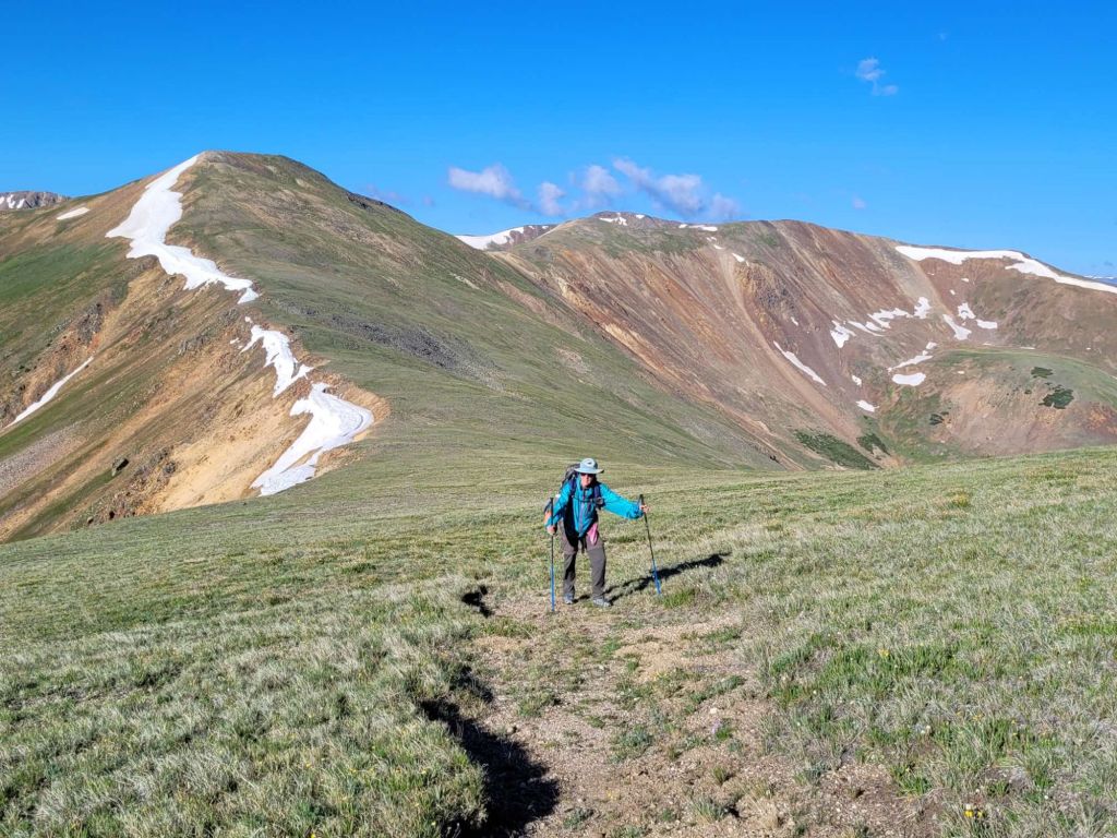 We camped with the mountain goats at 12000′ ready for the next day’s big event; hiking the Argentine Ridge then up and over Gray’s Peak (one of the state’s 14,000’+ mountains). It is a thing in Colorado to “peak bag” the “14ers”. There are 54 or so accessible peaks over 14,000′ in Colorado and it seemed to us that most of Denver heads to the hills to climb them all -especially around July 4th!