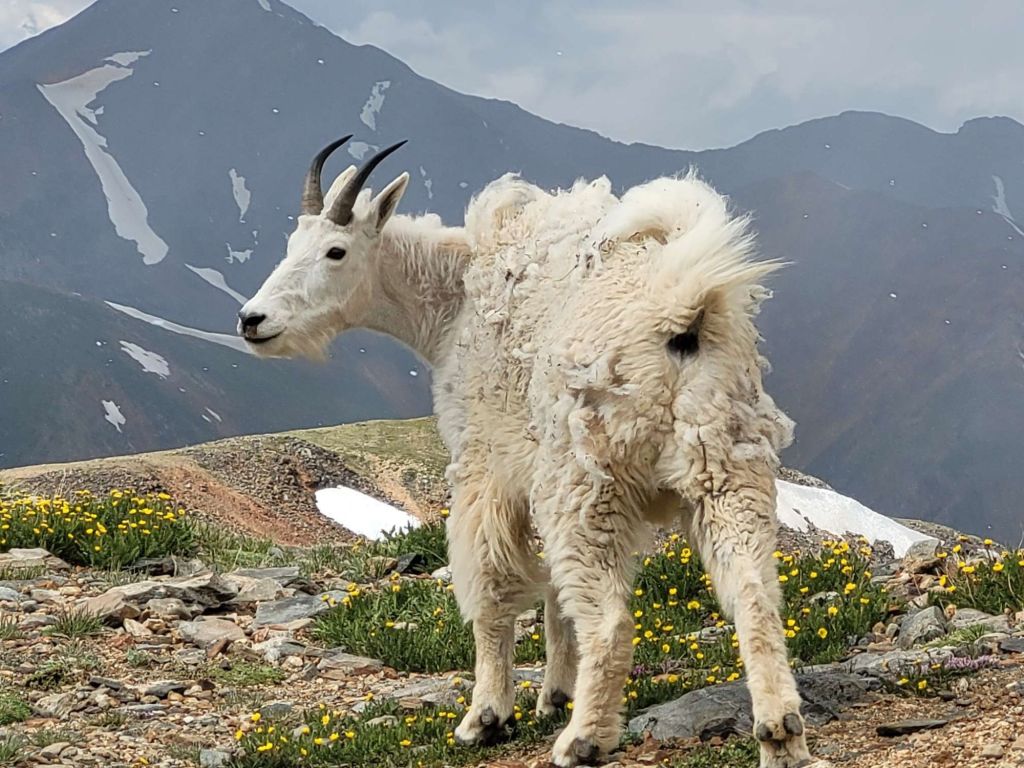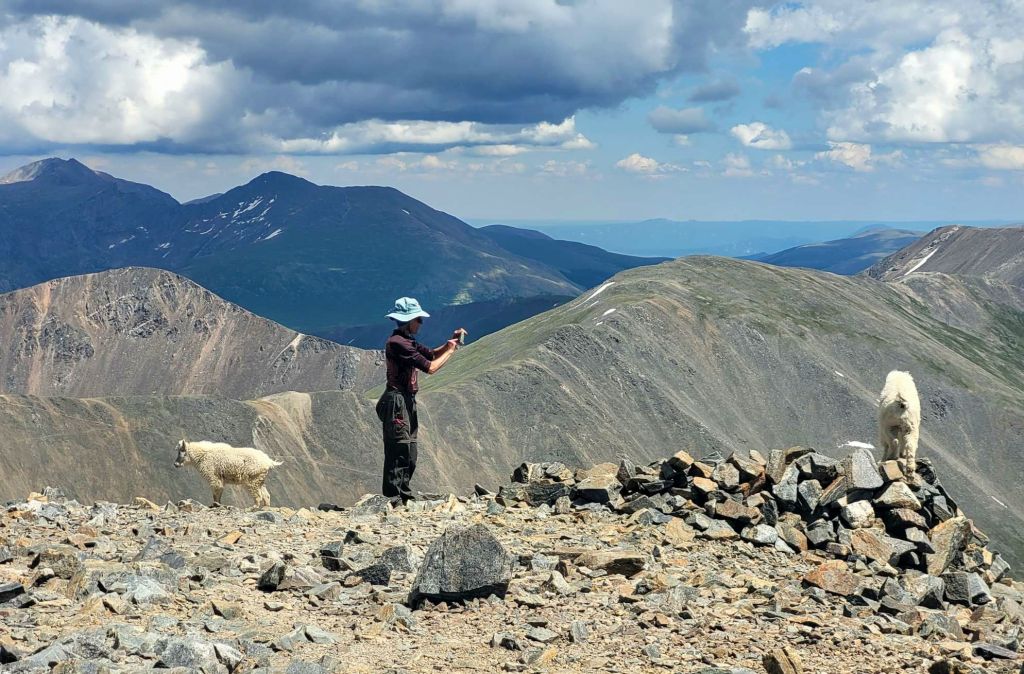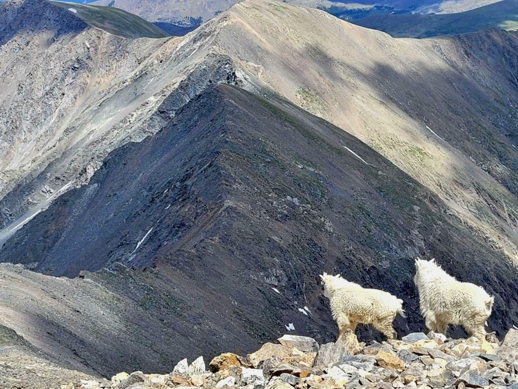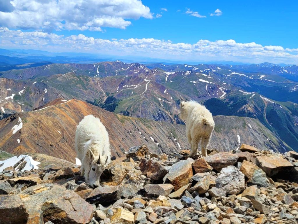 Despite the Argentine Ridge and Gray’s Peak not being an extended distance, it took us ALL day! The continuous altitude climbs, interactions with goats, and steep skinny rock paths slowed us down. We did have a clear view and great weather which was the key to success here. As you can guess, I just adored these wooly ones!
