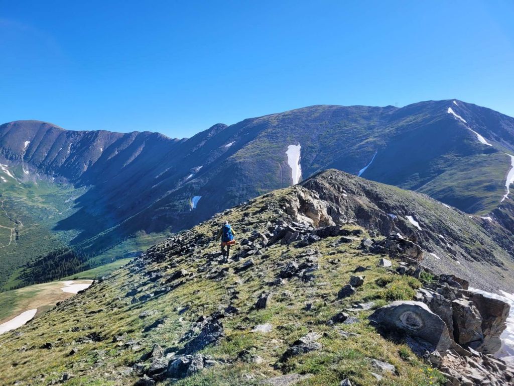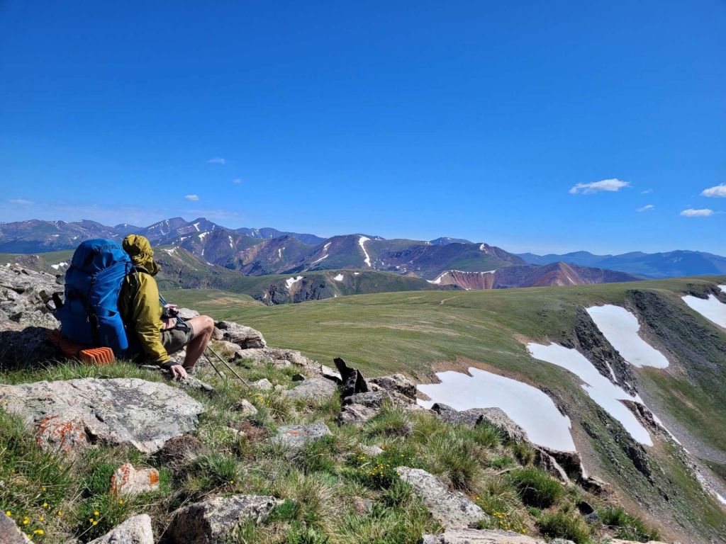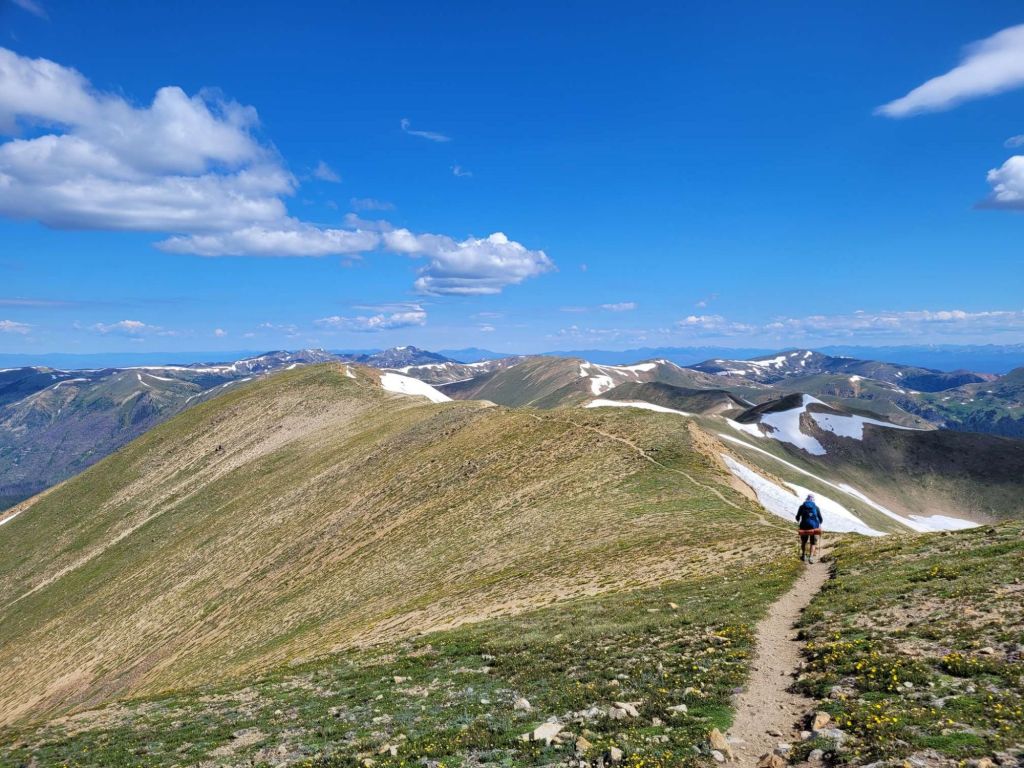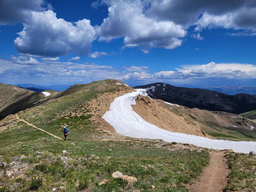 The most amazing stretch of the trail so far was from Breckenridge to Grand Lake. This was a heavier carry of 6.5 days of food but what a route! Within the first day the CDT parted from the Colorado Trail and immediately we began to climb up to the alpine tundra. Strong winds and views on all sides cleansed us as we climbed to 13,000′ again and again, always undulating up and further up along these ridges.