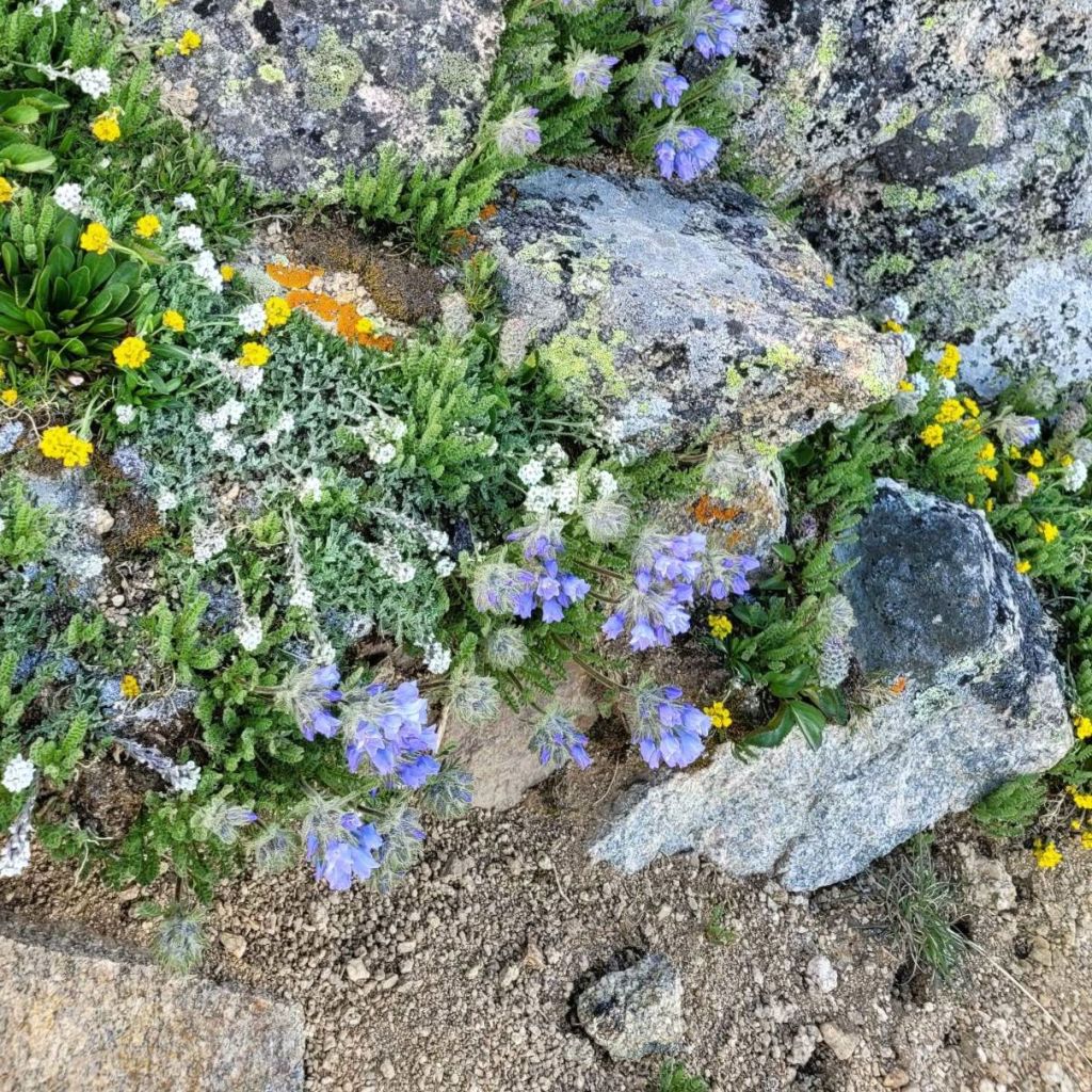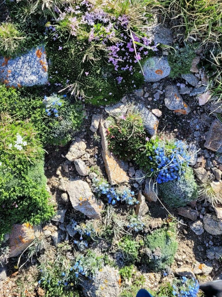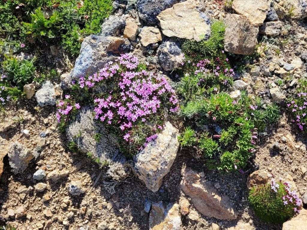 The flowers shrink in height in elevation but encouraged me on the climbs. They are the healthiest and most charming rock gardens!
