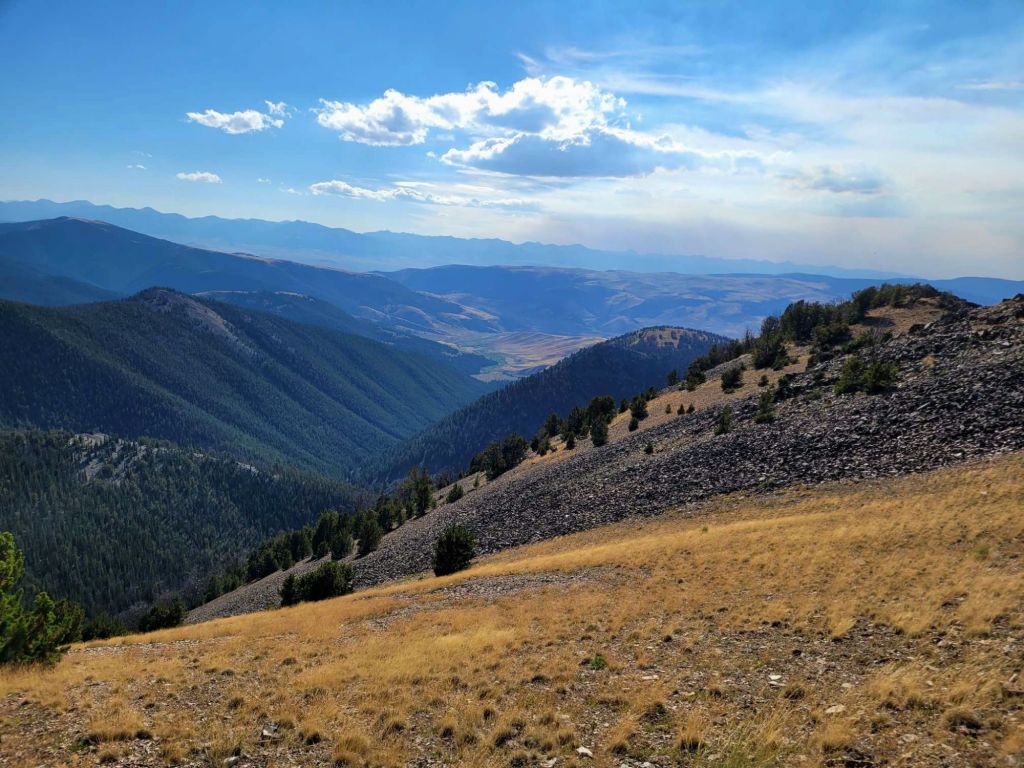 The Divide snakes its way between Idaho and Montana as it curves west. At first it is dry land with groves of trees, wide open grasslands and the big BIG sky.
