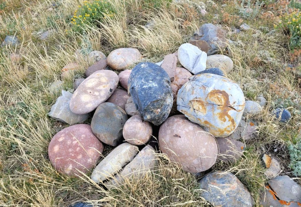Out of Lima the grassy hill mountains which our trail led us up and down, and up and down along their ridges, were made of glacially tumbled colourful rocks. I kept my head down as we hiked to shield from the blowing wind but also to hunt and collect rocks! As Jobie says this is a “dangerous habit” to get into while backpacking!