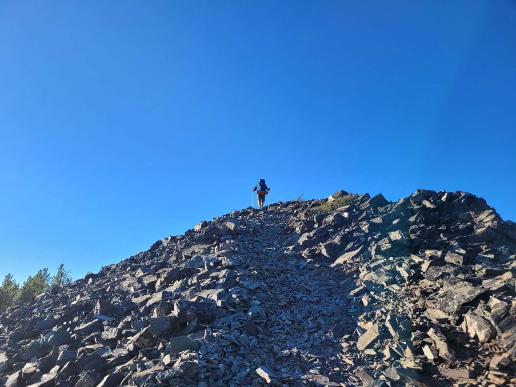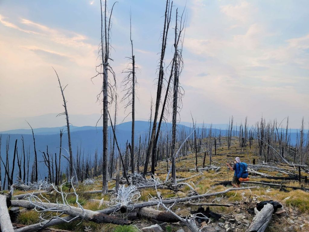 Then the wildfire smoke set in! For 3 days we climbed through this rocky, smoky, old burn land. Our throats and mouths felt thickened with it. There was no way out but to keep on going. I tried to control the complaining but it was hard.