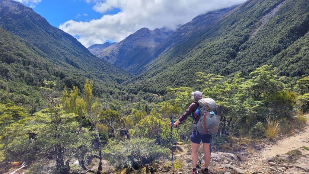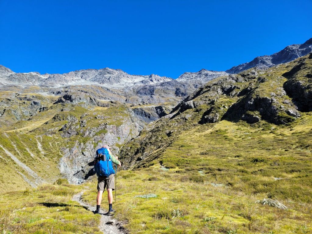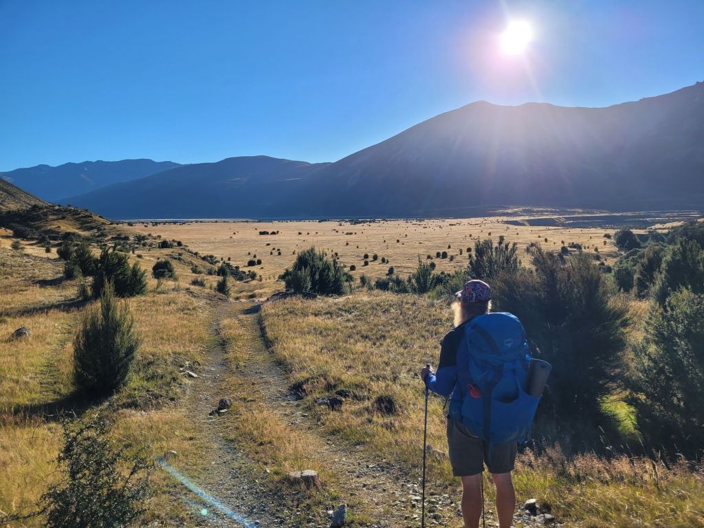 This track began with kms of well tended, wooded trail up Anne Pass then beautifully opened up into great grassy plains. We are always happier in the expansive open country and so we felt free here. Joy was in our hearts as we hiked in the sunny, big valley views!