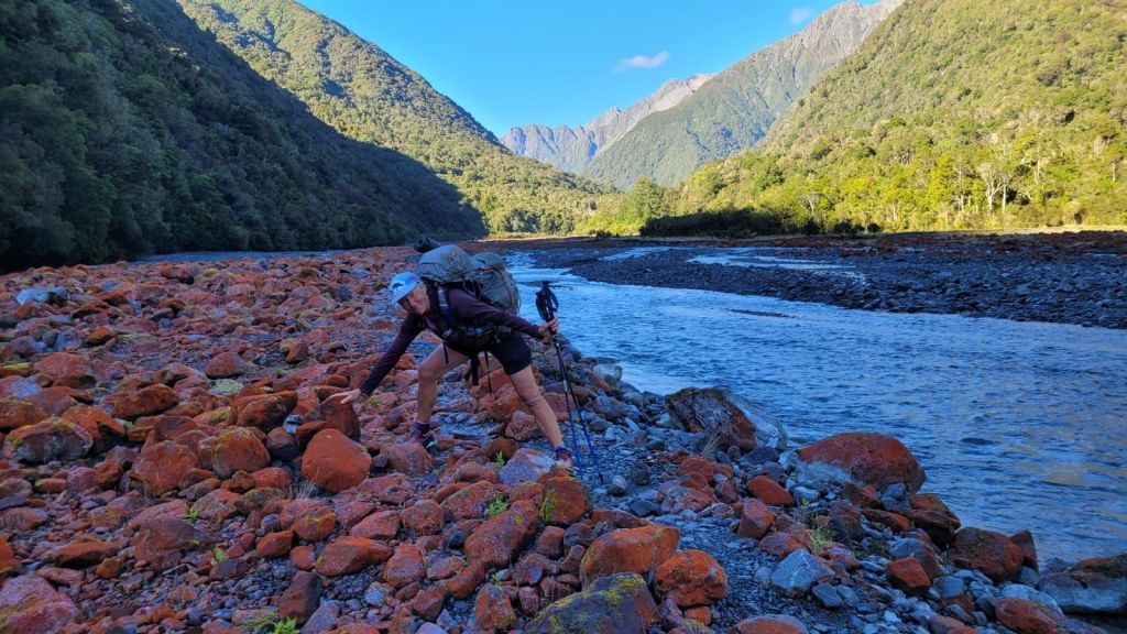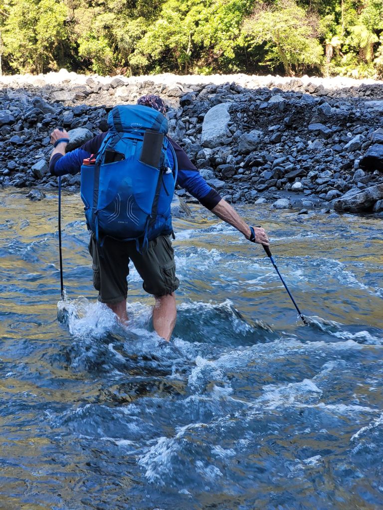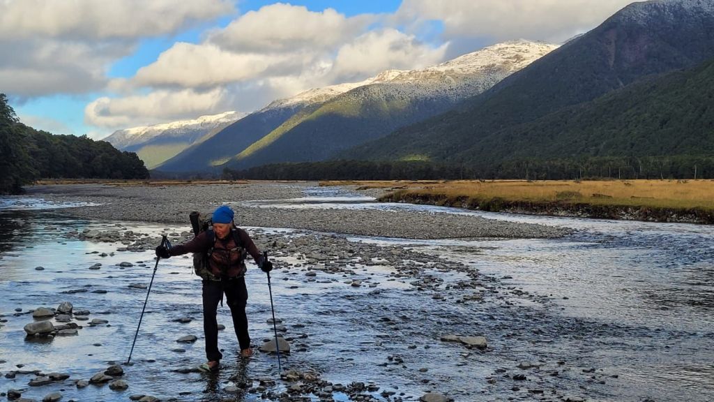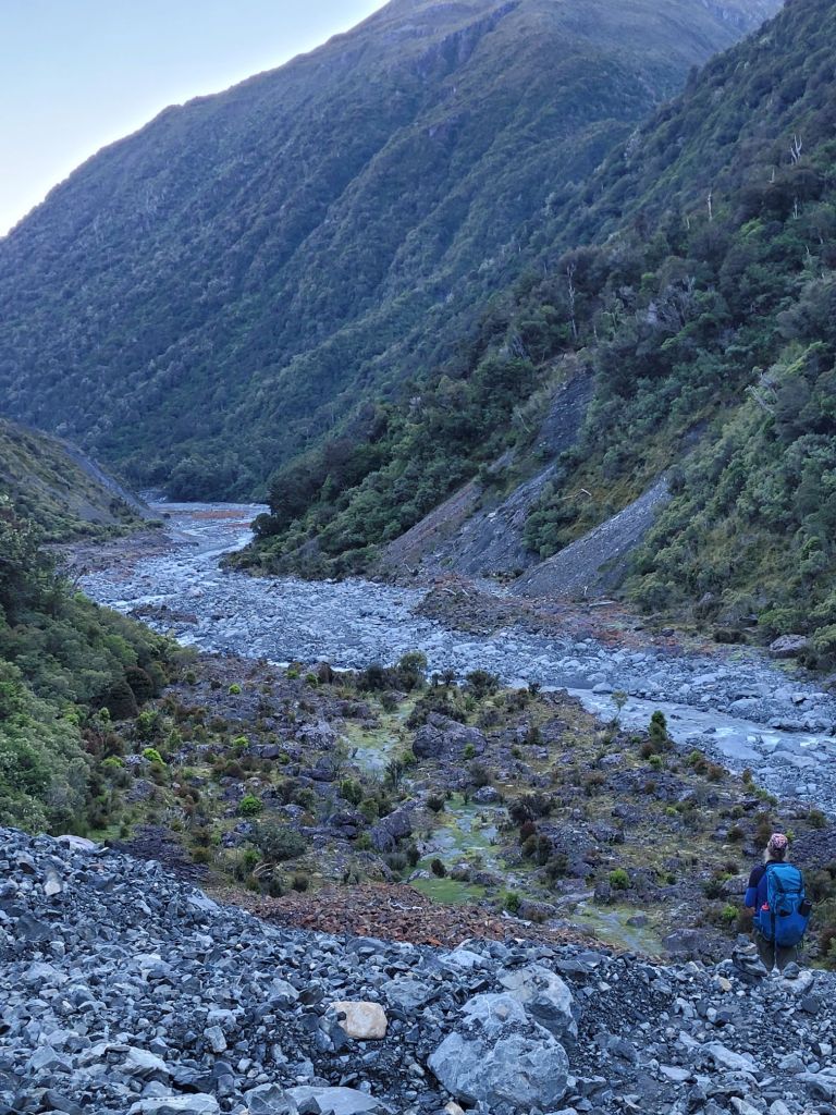 After getting lost and found on cow paths, we moved along the Taramakau river system to a campsite near Kiwi Hut. This area is renowned for sandflies and certainly lived up to its reputation! Our happy chosen spot became invaded with these nasty pests and we soon found ourselves trapped inside our tent for hours. We didn’t wash our dishes, brush our teeth or go pee until it turned dark and the cold had shut down their desire to hunt us. The saving grace was hearing the call of Kiwi birds at dawn and dusk.
