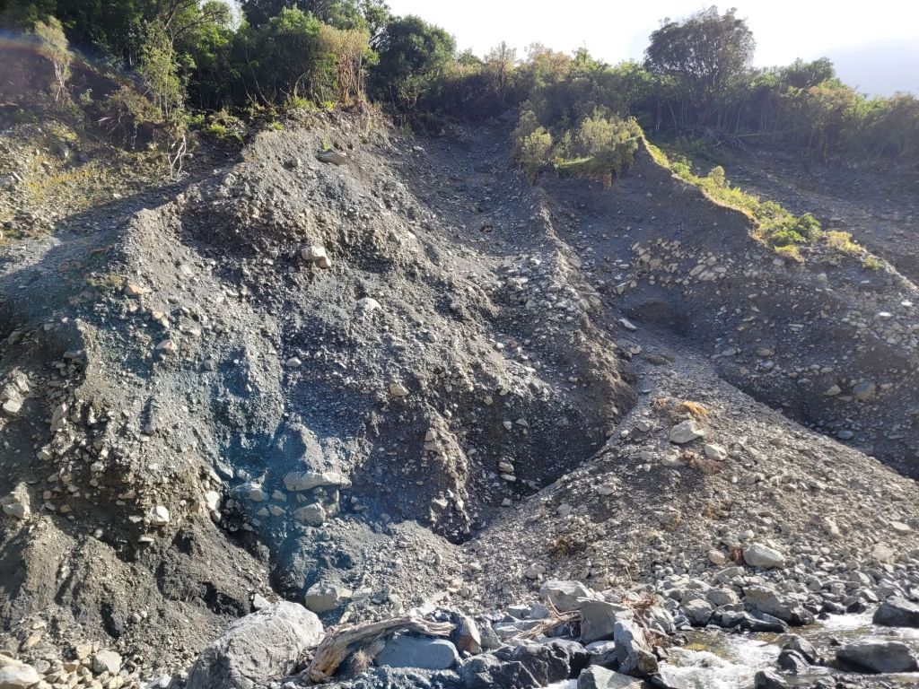 Many areas in NZ are young landscapes- always changing. Rockslides and erosion are common causing the trail to be altered after most rainfalls. It is unnerving hiking as your next footstep could slide out from under you, or you may be below loose material. An explanation of the steep sided nature and material composition of this terrain came from a Kiwi lodge owner. He explained that the glaciers built up the landforms from glacial till (small rocks and sand) which are easily eroded and he furthered that in some areas the ice melted away quickly causing the creation of steep sided mountains.