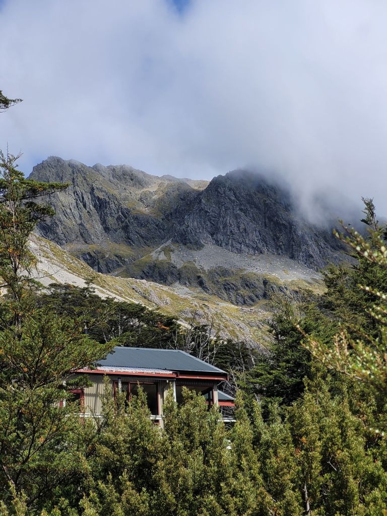 This is one of our favourite huts yet. There is a porch, a view, bird songs, and few sandflies! We had a lunchtime break to ourselves for an hour (very unusual) here.